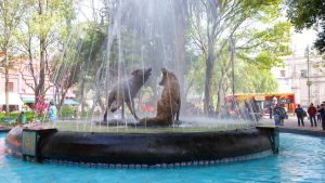 Coyoacan significa “lugar de coyotes”, de donde toma el nombre el encantador Jardín de los Coyotes, lugar preferido para pasear a la mascota y sentarse en una banca a saborear un helado. En su parte oriente se encuentra la singular parroquia de San Juan Bautista, y a un lado de la misma el Jardín Hidalgo.